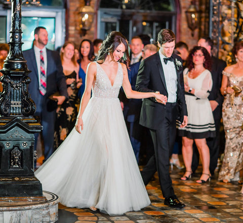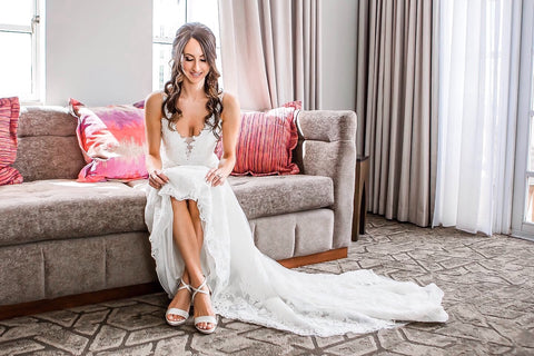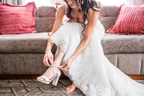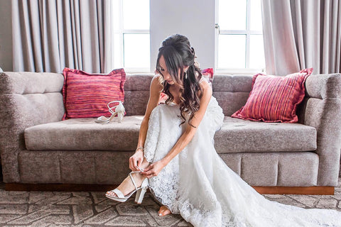 “You know when you have something specific in mind, and then nothing else is good enough? That’s how I felt about my wedding shoes. It took a lot of searching, and a trip to NY bridal week with my mom, but in the end I ended up finding exactly what I wanted. Harriet Wilde Shoes not only has a ton of beautiful pre-designed shoes, but they also let you custom design your own shoes. I chose the Arabella Block Heel because of how comfortable and sturdy they were, yet they still looked dainty and beautiful, and added the gold blossom embellishment on the back. Not only was the customer service experience with Harriet Wilde incredible, but the final product came out even better than I could have imagined, and the beautiful packaging that the shoes arrived in exceeded my expectations. Now I just need an excuse to wear them again!”